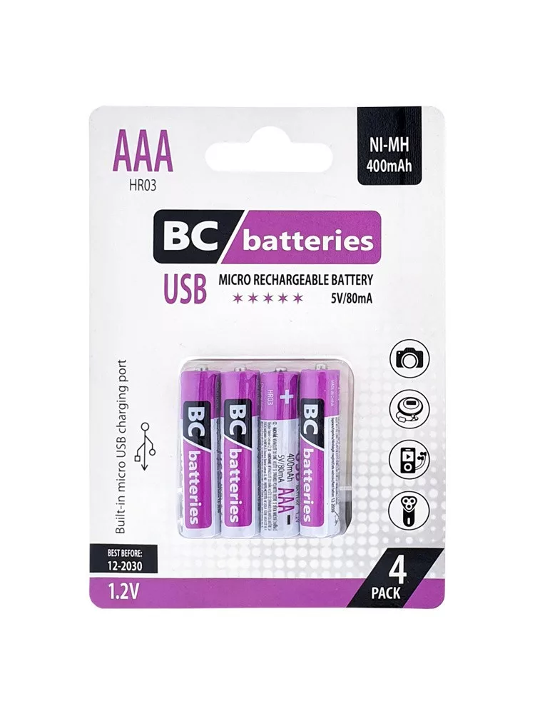 BC micro usb-vel tölthető AAA mikro akku 400 mAh RH6 1,2V B4
