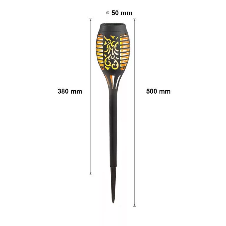 Dekoratív és energiatakarékos napelemes kerti lámpa, amely meleg fehér, lánghatású fénnyel teszi hangulatosabbá a kertet. Egyszerűen használható, automatikusan működik, és ideális választás utak, ágyások vagy kerti pihenősarkok megvilágításához.