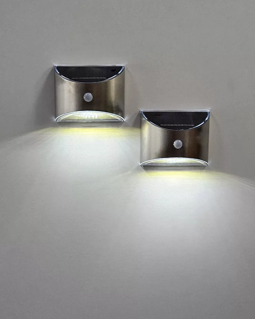 Praktikus és költséghatékony 2 darabos napelemes LED lámpa szett, amely ideális választás bejáratok, kerítések, teraszok vagy kerti utak megvilágítására. A beépített PIR mozgásérzékelő automatikusan bekapcsolja a világítást mozgás esetén, így növeli a biztonságot és a kényelmet.